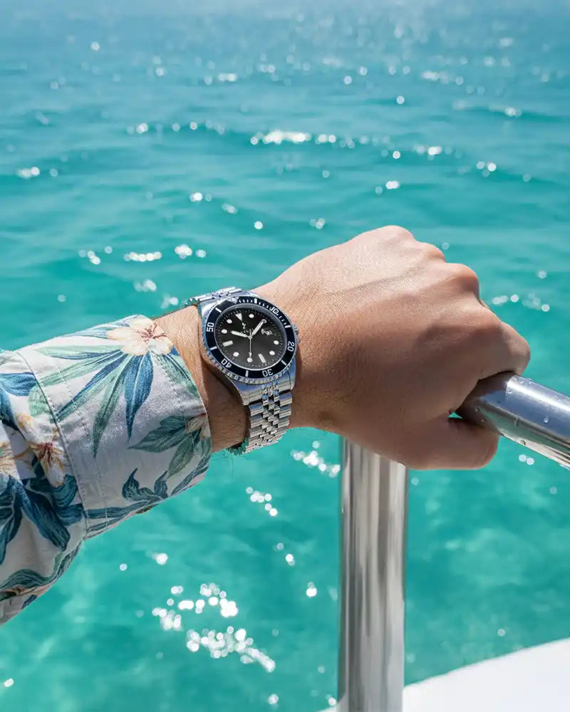 The Sylvi Ocean X is not just about looks; it's built to withstand the demands of daily wear. Crafted with durable materials, this watch is 3M water-resistant, allowing you to embrace your adventurous spirit without worry. Whether you're diving into the Pool or caught in a sudden rain shower, this watch has you covered. Elevate your accessory collection with the Sylvi Ocean X Black Silver Steel – the perfect blend of contemporary design and reliable functionality, ideal for any man looking to make a statement. Experience the perfect balance between style and performance today!