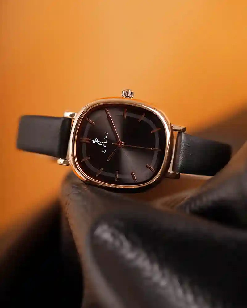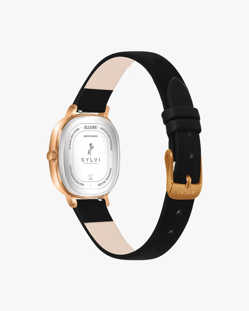Ellore Black Rose Leather Watch – Bold Elegance Meets Everyday Durability