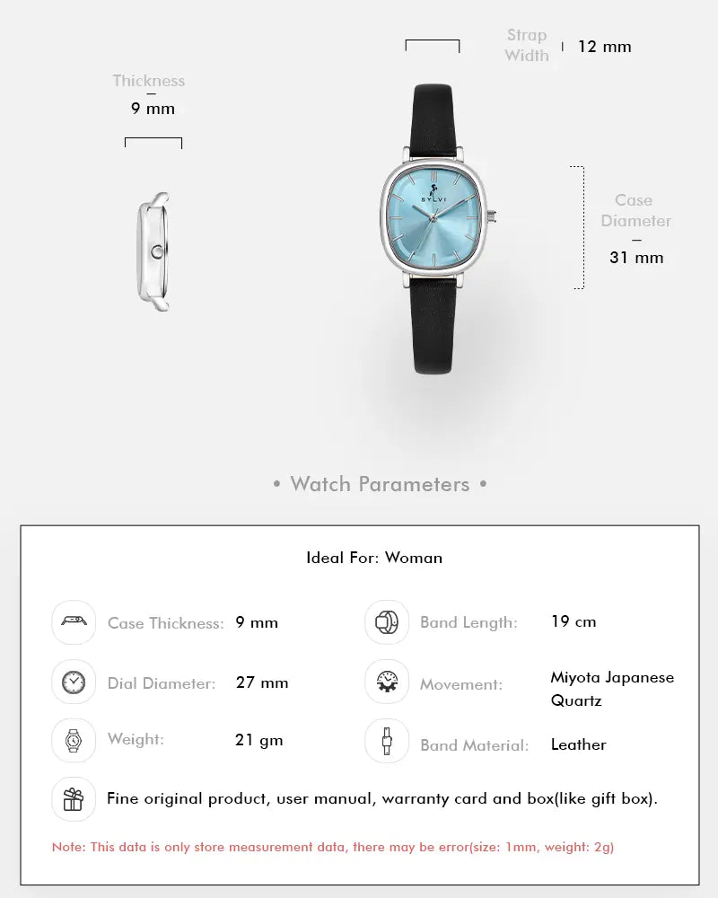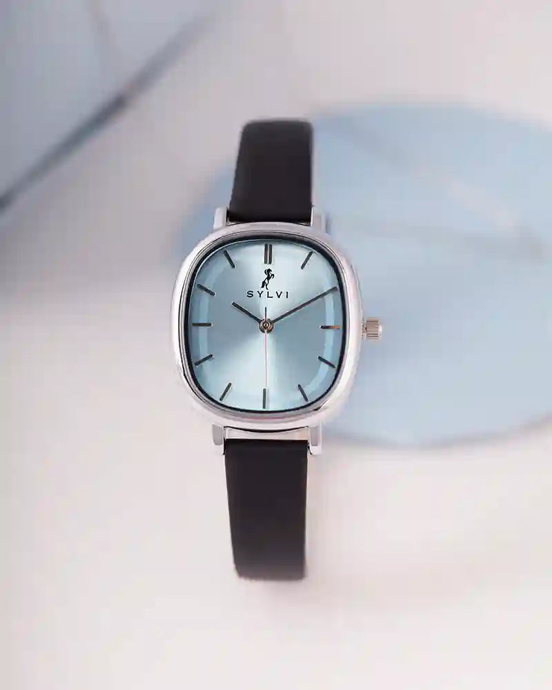 The cool ice-blue dial paired with a sleek Black leather strap creates a refreshing and elegant look perfect for work, casual outings, or evening events. This durable leather watch for daily wear combines modern style with practical features, making it a must-have accessory for women who value fashion and functionality.