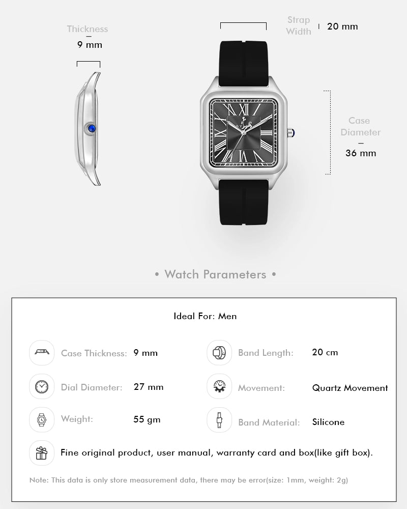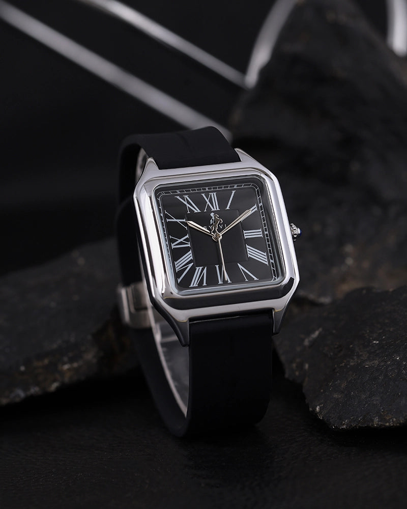 Classic meets contemporary in the Sylvi Opus. The rectangular case and Roman numeral dial bring a touch of vintage charm to this stunning timepiece. A reliable quartz movement powers the Opus, ensuring you’re always on time, while its silicone strap provides a durable yet comfortable fit.