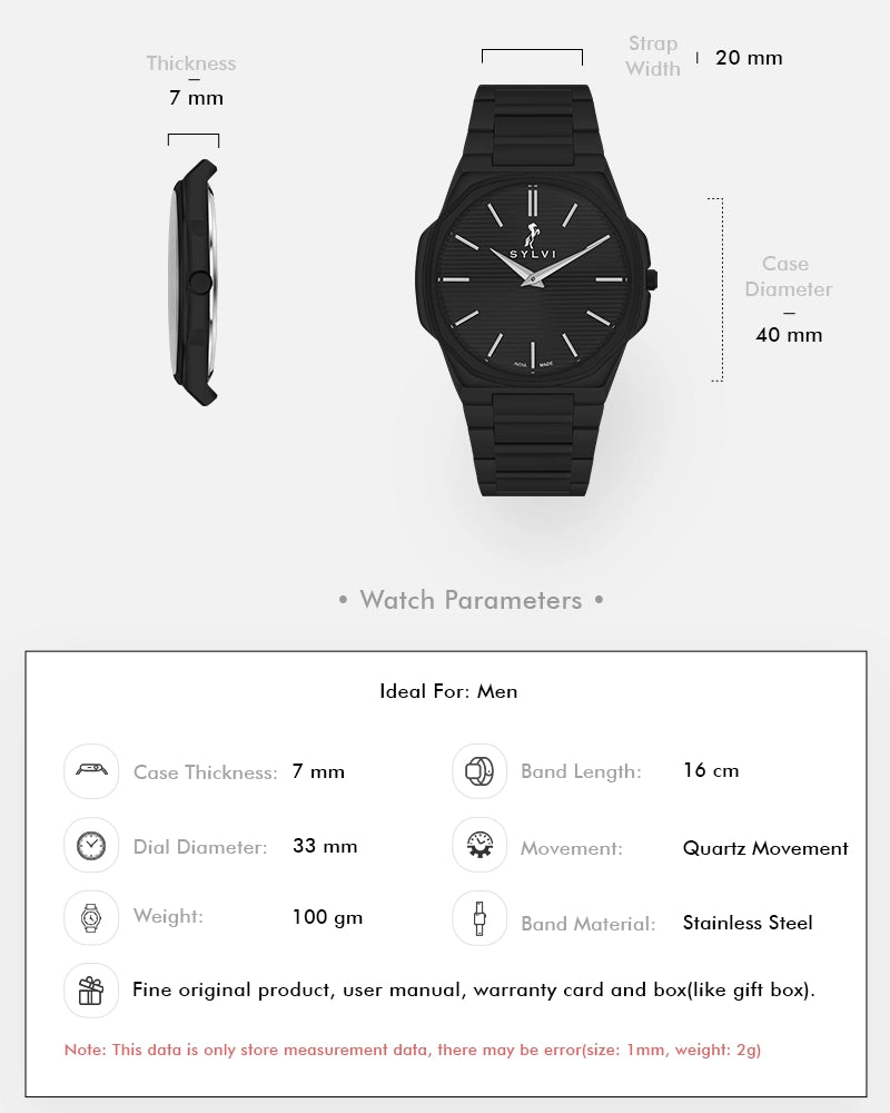 Built for everyday durability with 3 ATM water resistance, the Blade is designed to handle life’s daily adventures in style. Perfect for those who value elegance with a modern edge, this timepiece showcases Sylvi’s commitment to timeless design and exceptional craftsmanship. Embrace simplicity with the Blade – a watch that truly makes a statement.