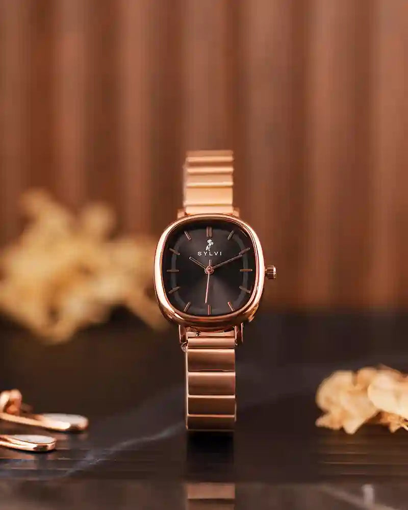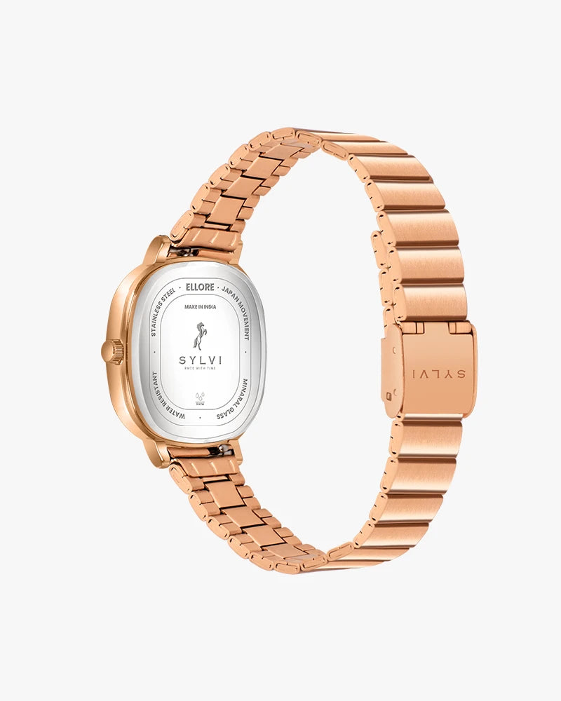 Step up your style game with the Ellore Black Rosegold Link Watch, a sophisticated blend of strength, elegance, and practicality. Designed for women who seek a perfect balance between fashion and function, this stainless steel analog watch from the Ellore Collection is ideal for daily wear and special occasions alike.