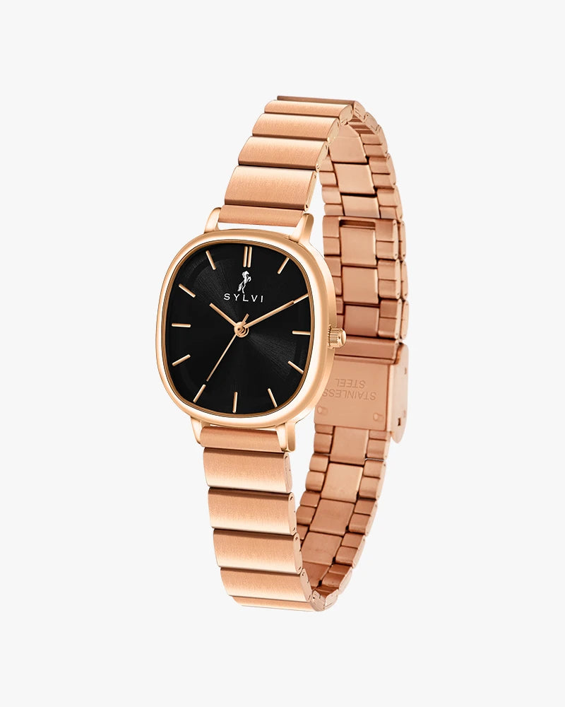 Ellore Black Rosegold Link Watch – Bold Elegance for Everyday Wear