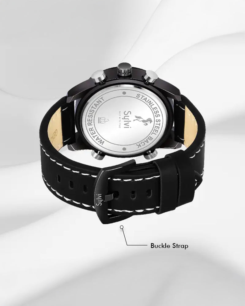 Sylvi Hawk Analog-Digital Black Dial Black Leather Strap Watch for Men