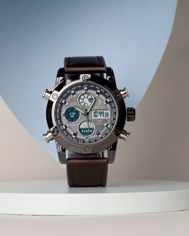 Tailored for adult men, the Sylvi Iconic Coffee Analog Digital Watch appeals to professionals, travellers, and enthusiasts who value a blend of tradition and innovation. Its array of features supports an active lifestyle, while its design complements both formal and casual attire.
