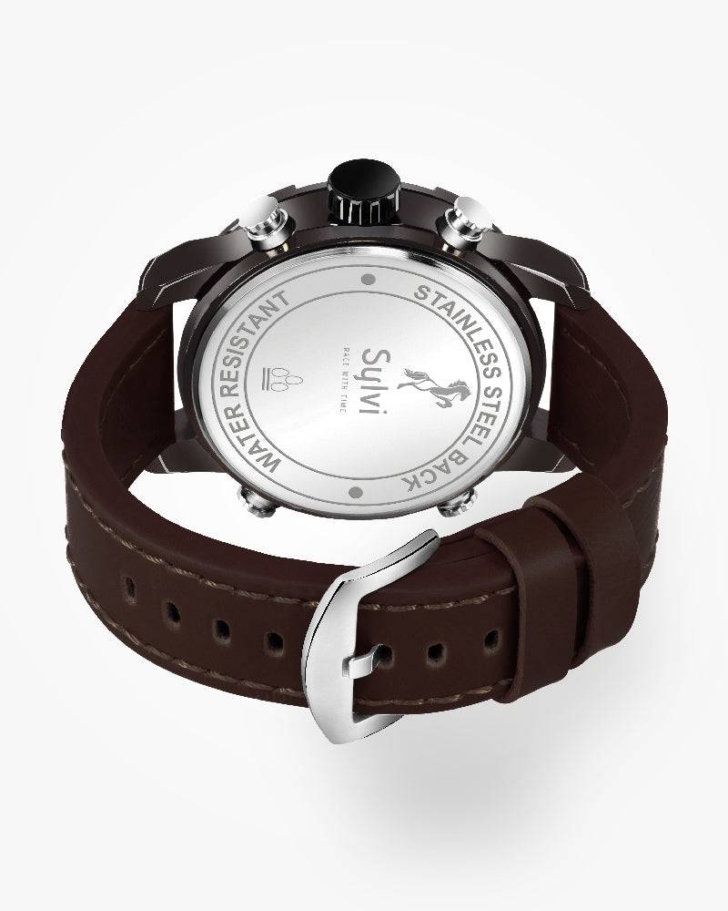 Sylvi Iconic Analog-Digital Black Dial Coffee Leather Strap Watch for Men