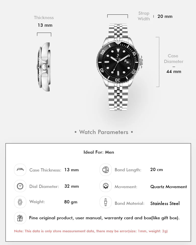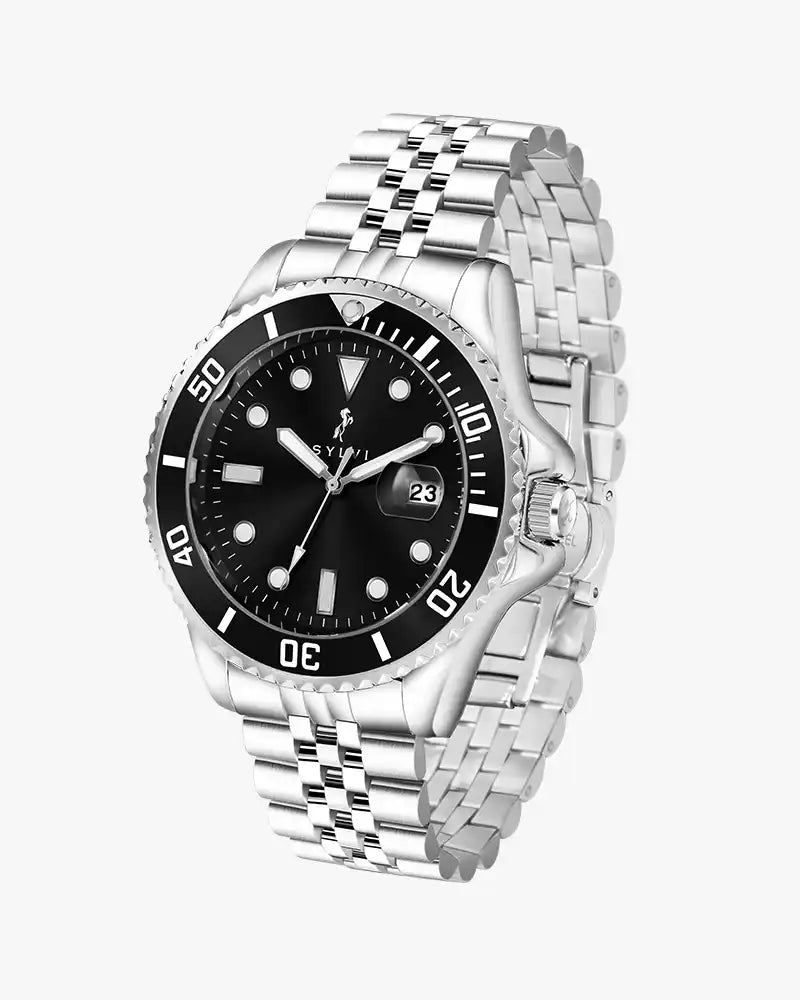 The Sylvi Ocean X is not just about looks; it's built to withstand the demands of daily wear. Crafted with durable materials, this watch is 3M water-resistant, allowing you to embrace your adventurous spirit without worry. Whether you're diving into the Pool or caught in a sudden rain shower, this watch has you covered. Elevate your accessory collection with the Sylvi Ocean X Black Silver Steel – the perfect blend of contemporary design and reliable functionality, ideal for any man looking to make a statement. Experience the perfect balance between style and performance today!