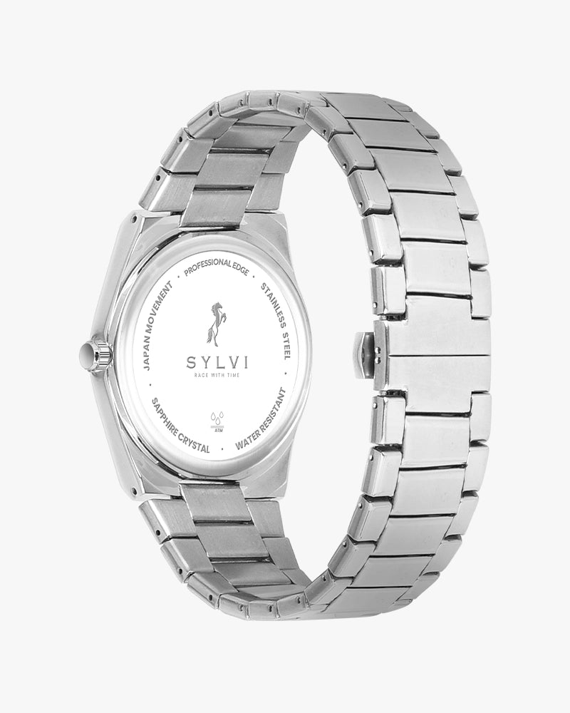 The Sylvi Professional Edge Black Silver Watch is specially crafted for India. It's the ideal fusion of style and toughness, featuring a robust stainless-steel case that not only looks impressive but can also withstand exposure to water, a must-have feature for India's varied climate.