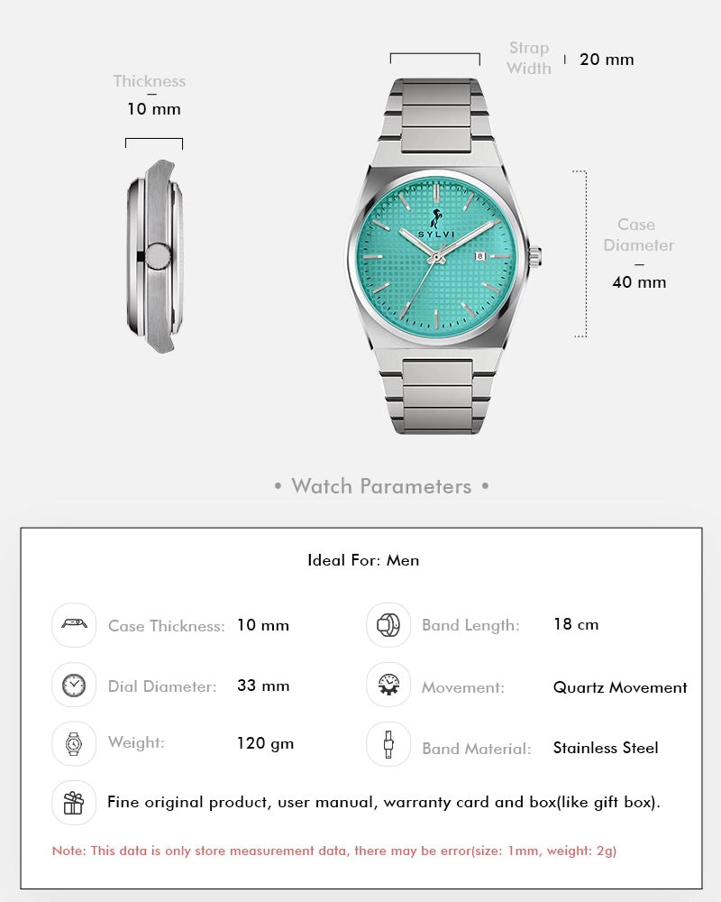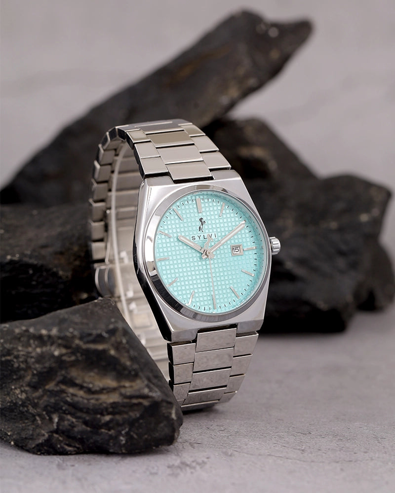 The Sylvi Professional Edge Watch with its striking Electric Blue dial and sleek Silver case and stainless steel strap is the perfect blend of bold design and refined elegance. Tailored for the modern Indian man, this timepiece makes a statement whether you're at a formal event, a casual gathering, or just out for a day of leisure.