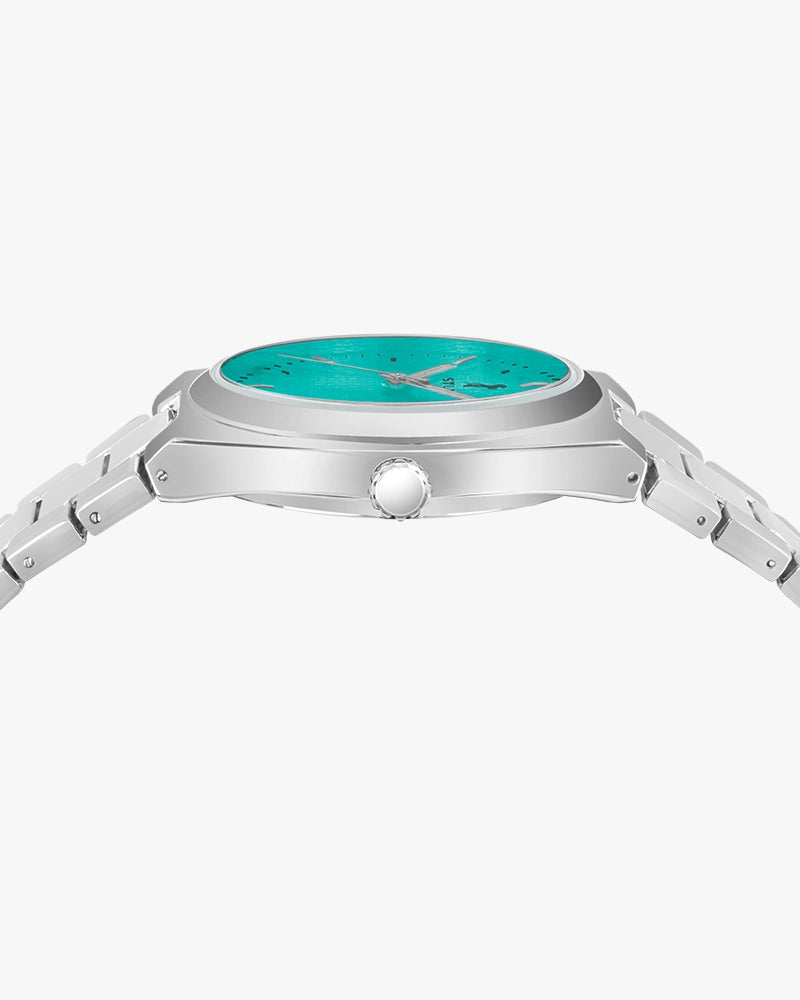 The eye-catching Electric Blue dial adds a vibrant touch to the classic silver casing and strap, creating a balance of modern style and timeless sophistication. Choose the Sylvi Professional Edge to elevate your look on any occasion—it's not just a watch, but a symbol of your unique taste and flair.