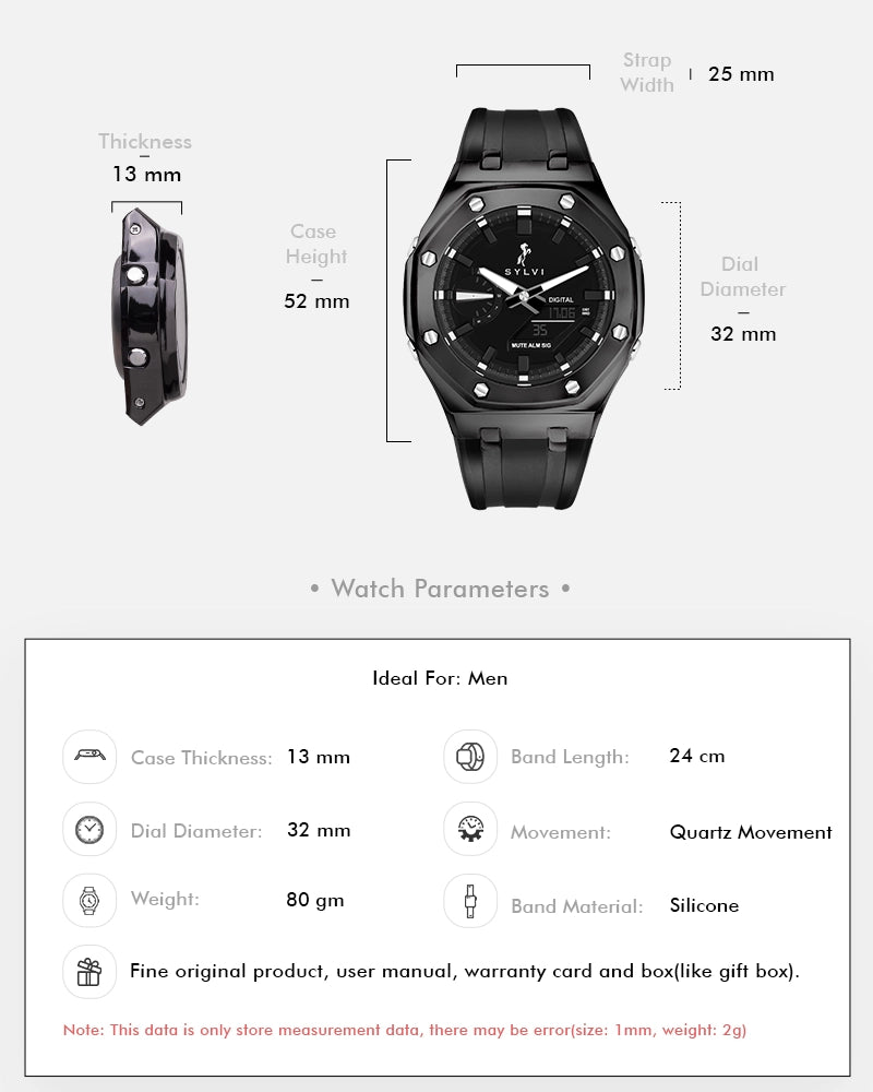 • Strap Material: Silicone – Ensures durability and a comfortable fit for prolonged wear.