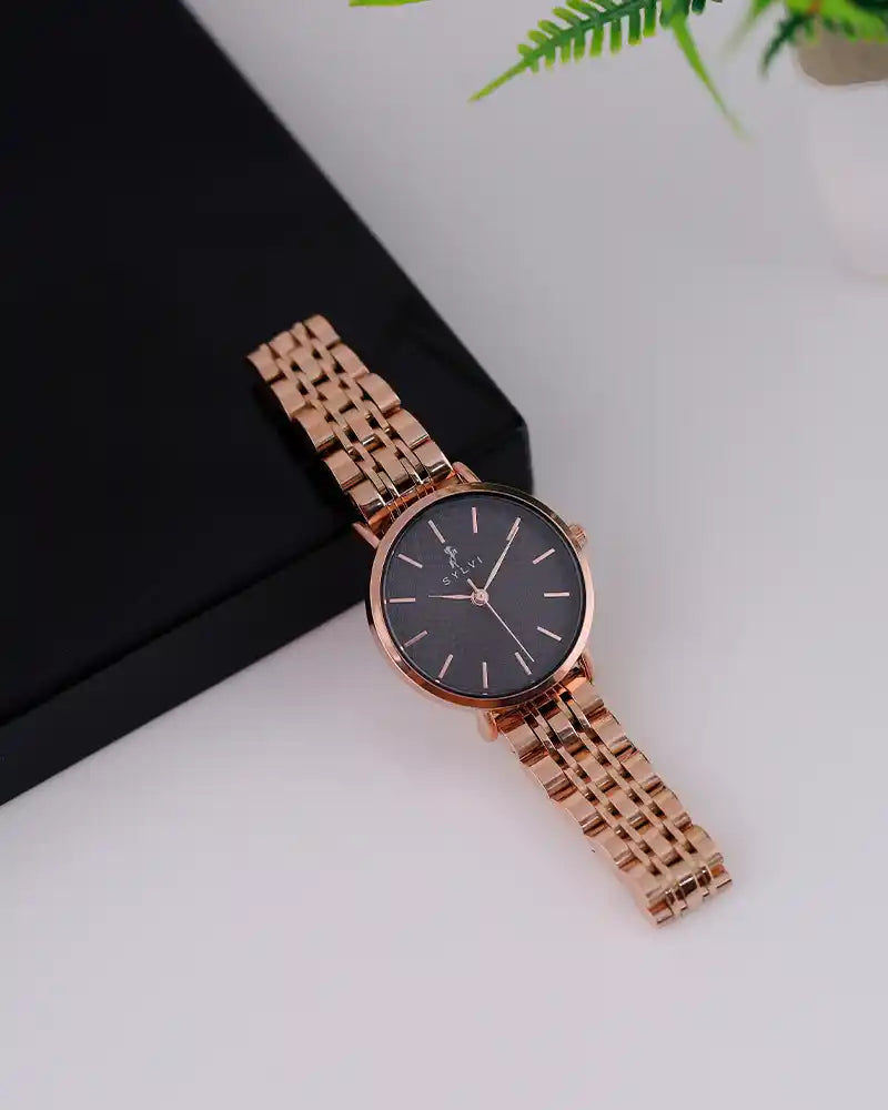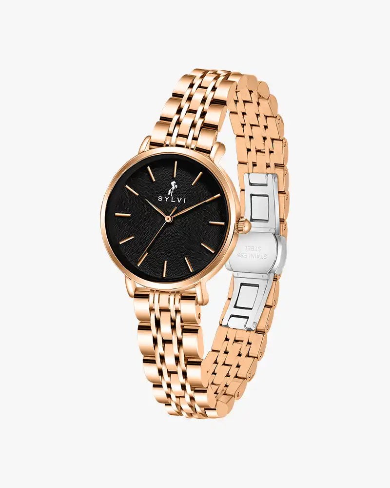 The Riva Black Roseluxe Steel isn't just a Sylvi watch for women; it's a statement piece — bold, premium, and designed to match your confidence in every moment.