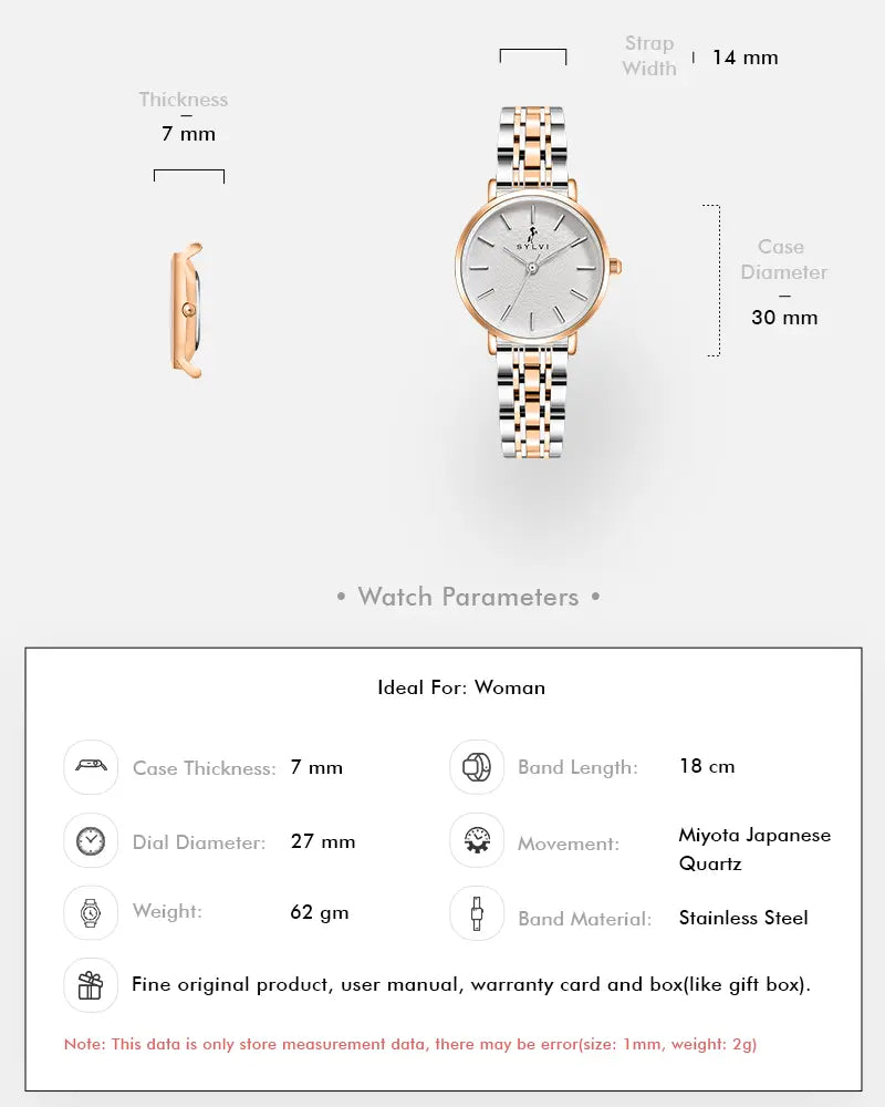 The multi-functional dial adds a touch of modern elegance while keeping your time management effortless. Whether you're at work, traveling, or out for an evening, this Sylvi watch for women makes every outfit look polished and chic.