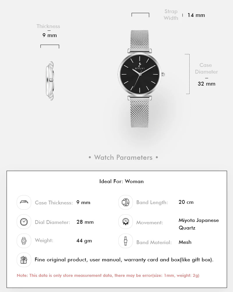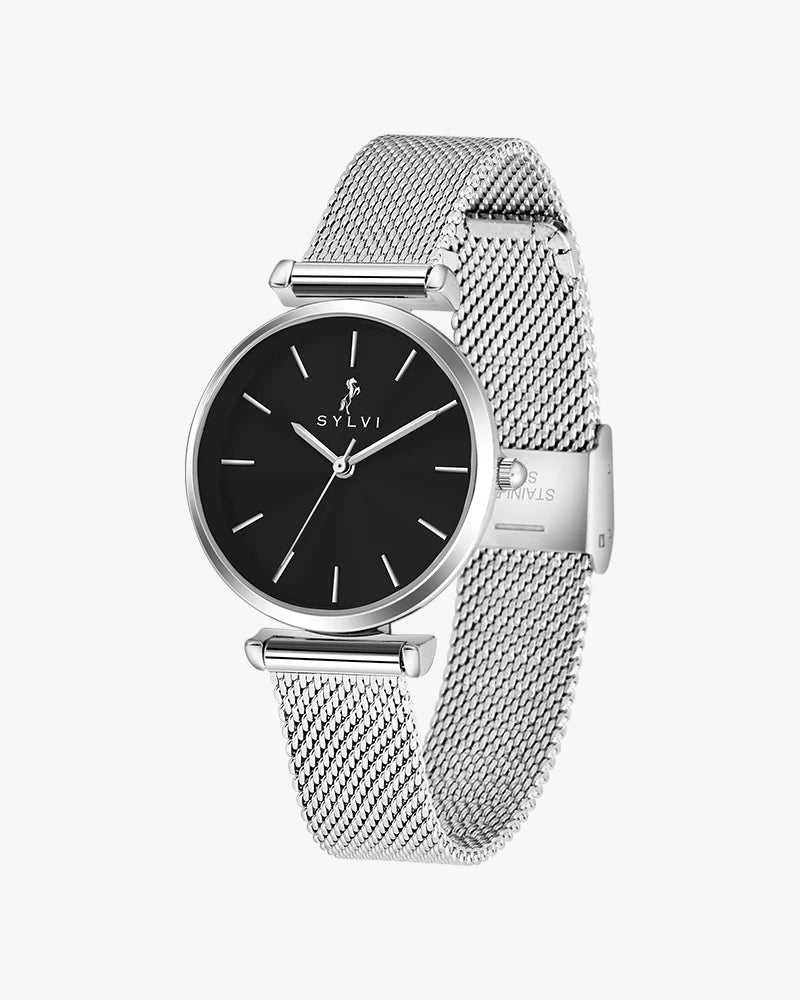 The Serene Black Silver Mesh is more than just a watch for women — it's a statement of quiet sophistication. Perfect for those who appreciate clean design, durability, and effortless style in a single, elegant timepiece.
