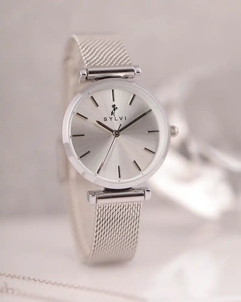 Serene Silver Mesh Women's Watch – Designer Style with Everyday Comfort