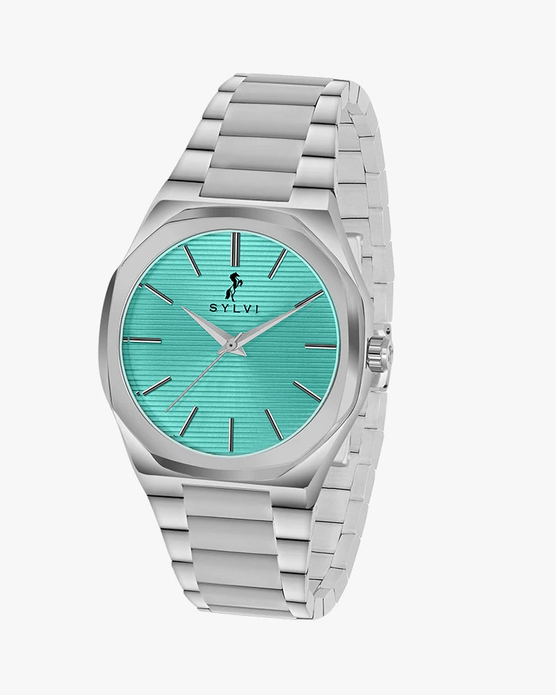 Designed for the modern professional, the Specter Electric Blue Silver Steel blends timeless elegance with contemporary style. Its electric blue dial, encased in a sleek silver stainless steel frame, offers a bold yet sophisticated aesthetic. The minimalist analog display ensures effortless readability, while the quartz movement guarantees precise timekeeping. Whether you're in the boardroom or out for a formal evening, this timepiece enhances your confidence with its refined appeal.