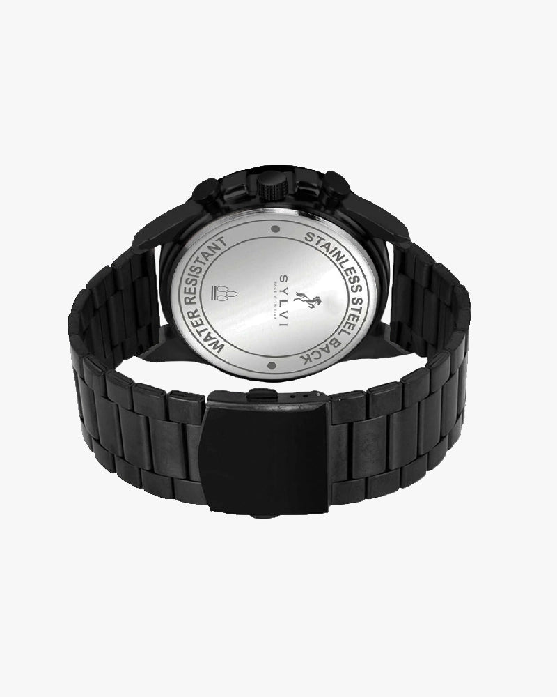 Sylvi Timegrapher Gold Accent Black Steel Strap Chronograph Watch for Men