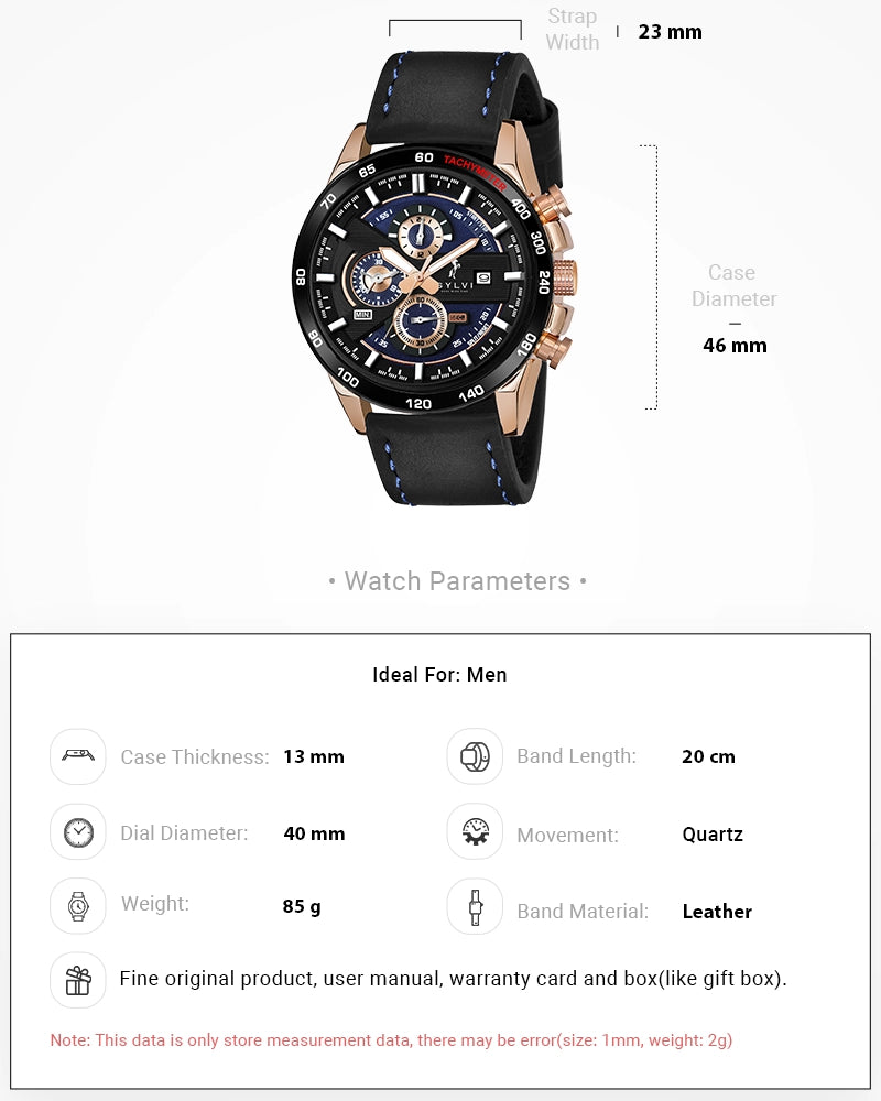 - Strap: The black genuine leather strap provides both comfort and durability, complementing the watch's sophisticated design.